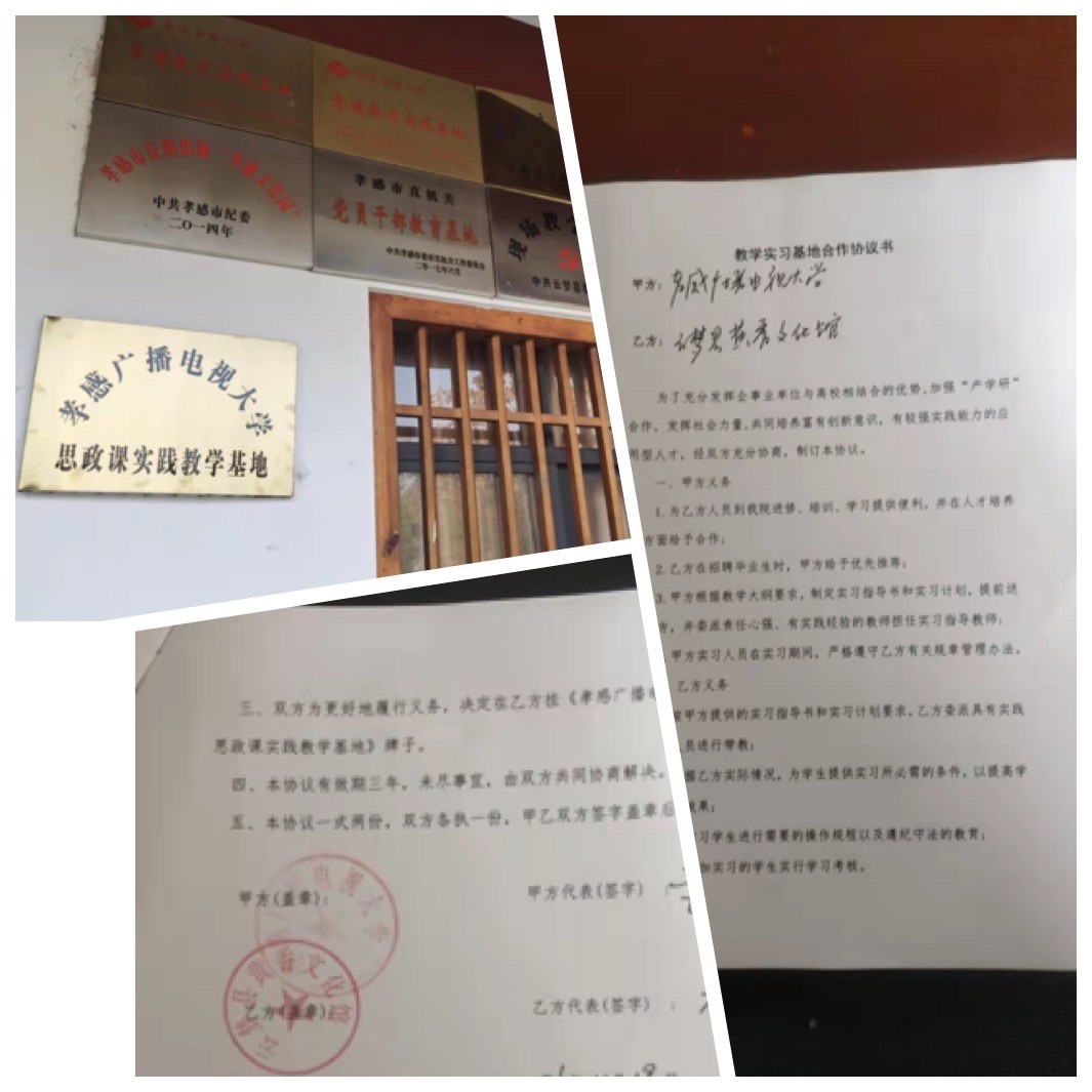 为深入贯彻习近平总书记在学校思想政治理论课教师座谈会上的重要讲话精神和教育部、国家开放大学的有关要求,11月19日,孝感广播电视大学思政课实践教学基地挂仪式在云梦县黄香文化馆举行。学校关工委主任常红生、副院长李惠良、云梦县黄香文化馆杨勇出席了挂牌仪式。