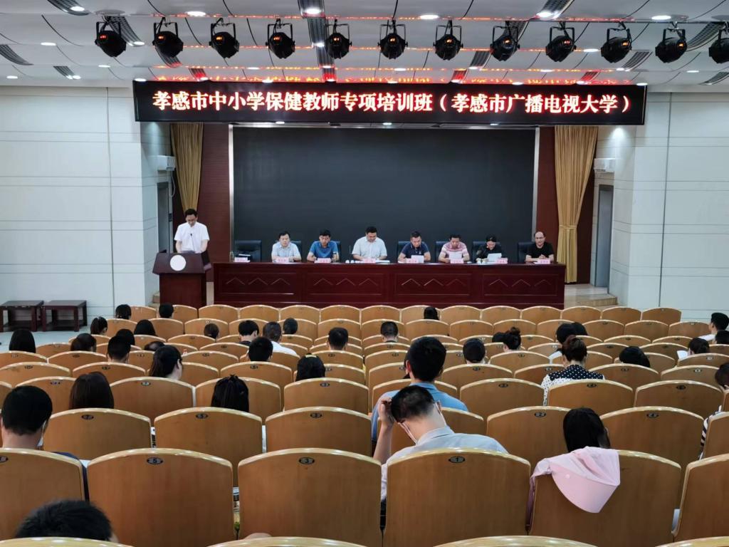 为全面推进全市中小学深入了解卫生保健知识,进一步提升学校疾病、公共卫生防控的基本能力和应急规范的操作技能,孝感市教育局、卫健委联合举办,我校承办的孝感市中小学保健教师专项培训班(第四期)于7月11日上午在文博馆学术报告厅顺利开班。市教育局党组成员、副局长丁萌,市卫生健康委员会公共卫生总工程师冷宝华,市红十字会办公室主任张学伟,医学院院长许三林出席,来自市高新区、市直、孝南区中小学的58名参训教师参加了开班仪式。开班仪式由丁浙英主持。