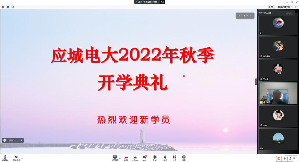 本次开学典礼采用远程线上会议的方式进行,学校分管负责人、班主任以及2022年秋季全体新生共计100余人通过腾讯会议同步参加。活动增强了同学们的仪式感、荣誉感、归属感,同时为新同学尽快适应后续学习生活作了明确指导。下一步,我校将认真贯彻国开办学理念,开拓创新,不断提高教育教学服务水平,推动我校成人高等学历继续教育更好更快发展。